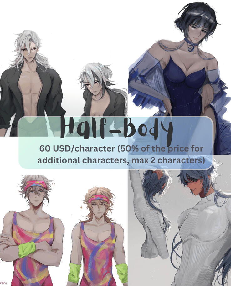 A half-body fully rendered illustration of a character of your choice!+ additional character (max 2) | +50% of the final price